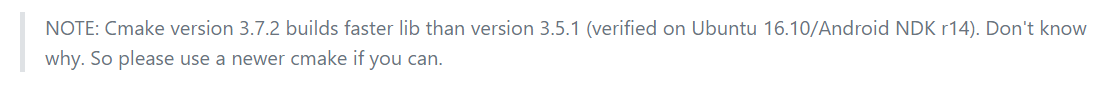 ubuntu16.04自带了3.5.1版本的cmake,但作者标注cmake版本会影响build速度。