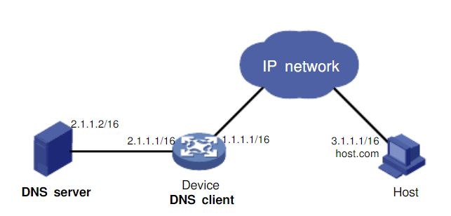 # 配置域名服务器的IP地址为2.1.1.2。 [Sysname] dns server 2.1.1.2
