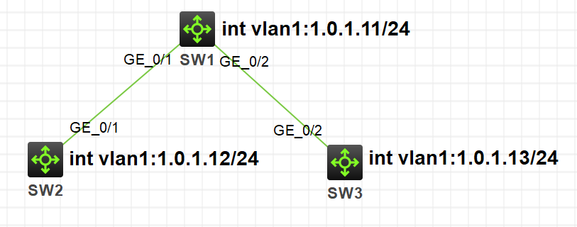 其中SW1作为ntp服务器,SW2、SW3作为ntp客户端。