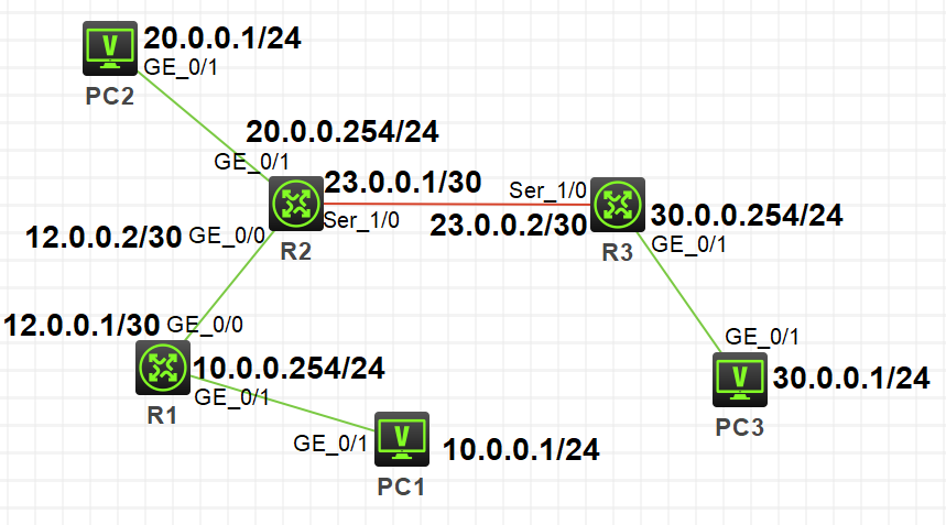 1 | [R3]ip route-static 0.0.0.0 0 20.0.0.2 |