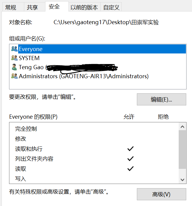 注意:确保挂载物理目录拥有较低权限,右键查看该文件夹属性->安全,如没有users等用户组时,新建一个everyone用户组,否则无法匿名登录。