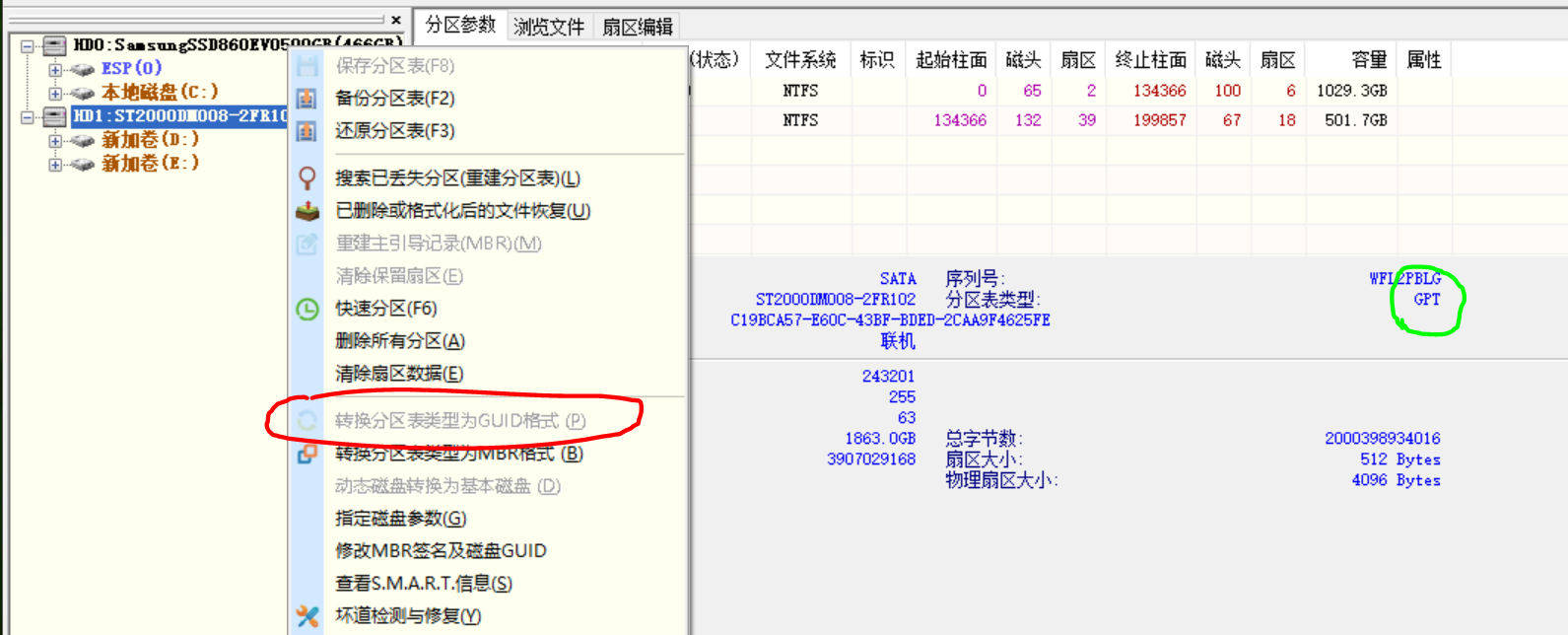 在pe或者win10(管理员身份)中运行DiskGenius,找到系统盘符,右键选择转换分区类型为GUID格式,转换完成后可以看到分区表类型变成gpt: