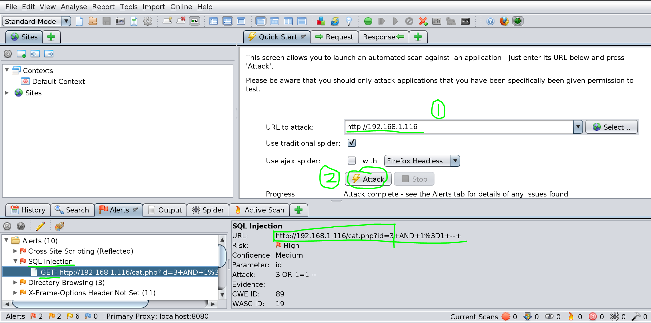 owasp zap扫描网站可利用漏洞,这里利用SQL高危漏洞: