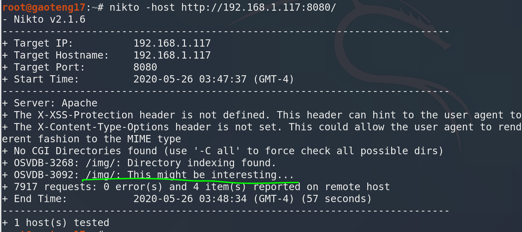 nikto挖掘80、8080端口web信息,找到一个登录页面和一个敏感目录/img/: