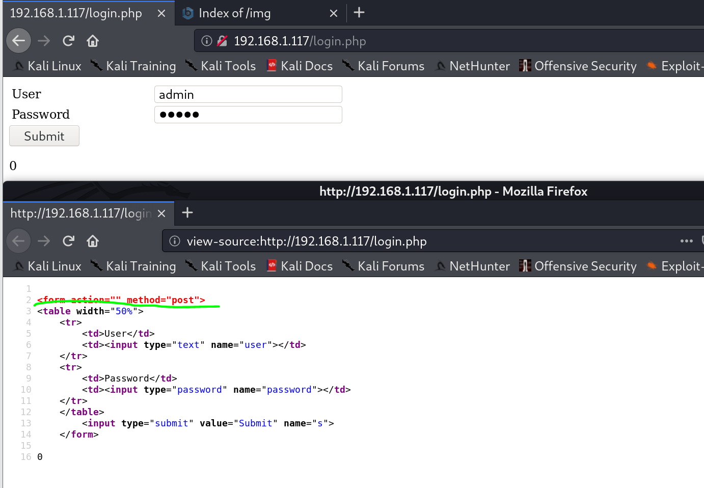 - 访问登录页面,尝试弱口令admin登录失败,查看源码是post请求: