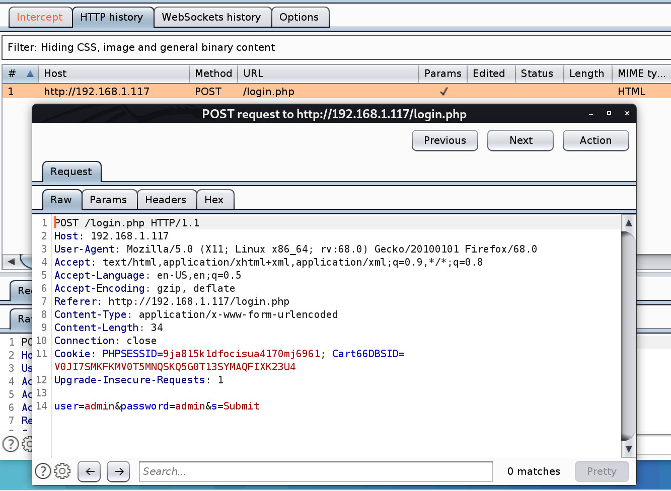 - 浏览器模拟一次登录,在burpsuite查看raw文件,保存下来给sqlmap用: