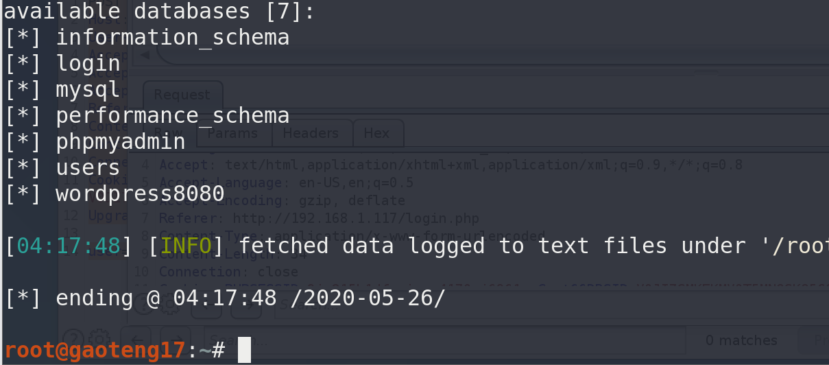 - sqlmap使用raw文件扫描,获取到数据库列表: