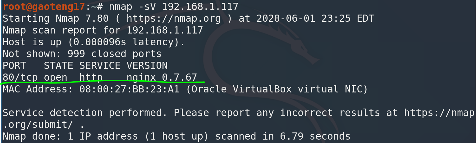 - nmap扫描靶机IP地址开放端口,一个web服务:
