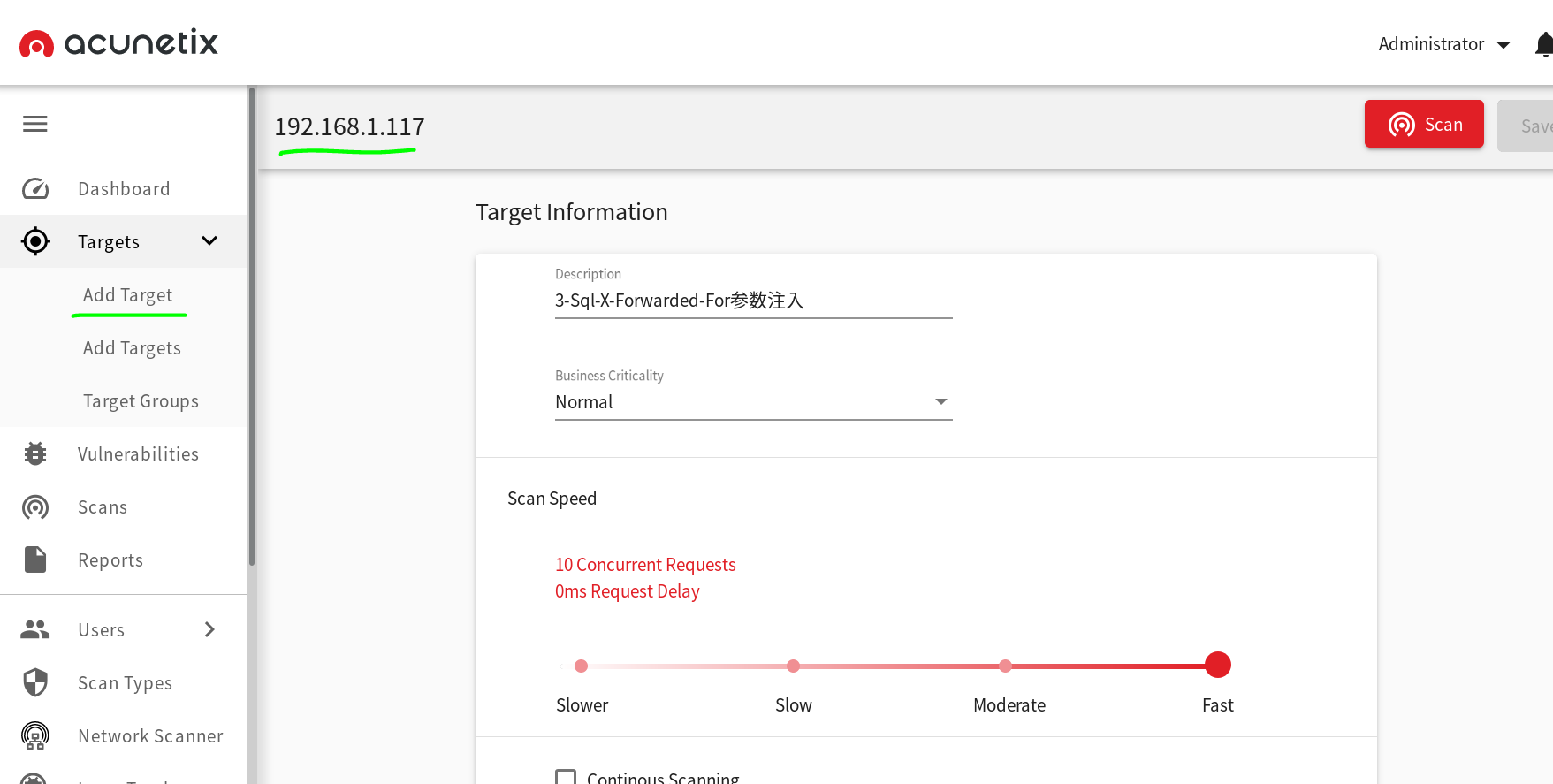 - 使用AWVS,新建target为192.168.1.117: