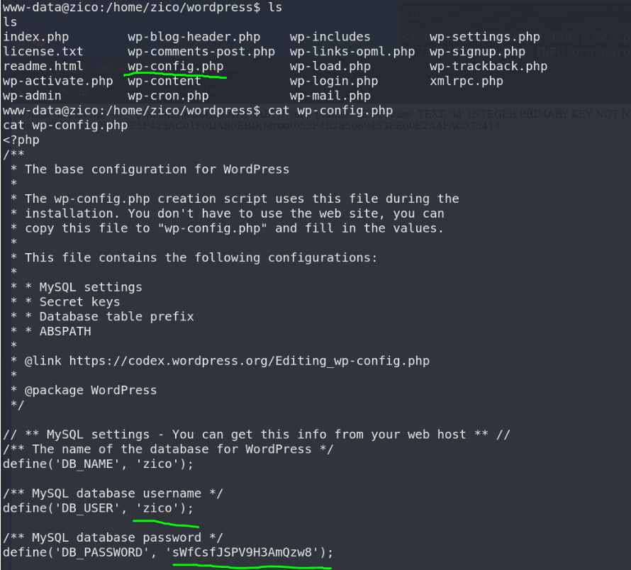 /home/zico目录下有wordpress文件夹,一般里面的配置文件有数据库密码: