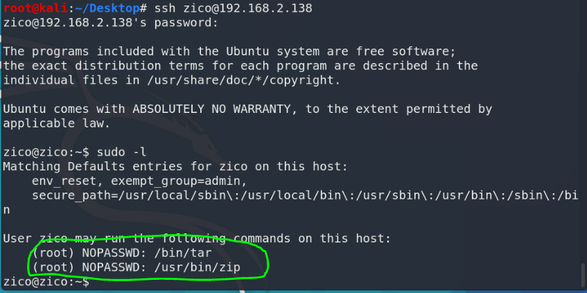 - ssh登录成功,依旧低权,不过可以tar/zip提权: