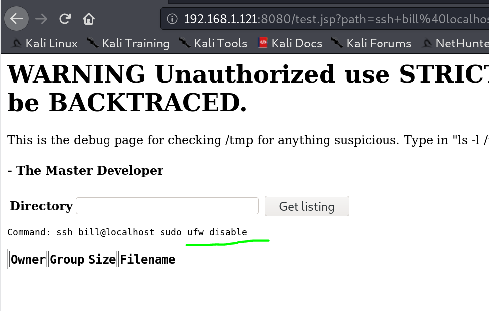 1 | ssh bill@localhost sudo ufw disable |