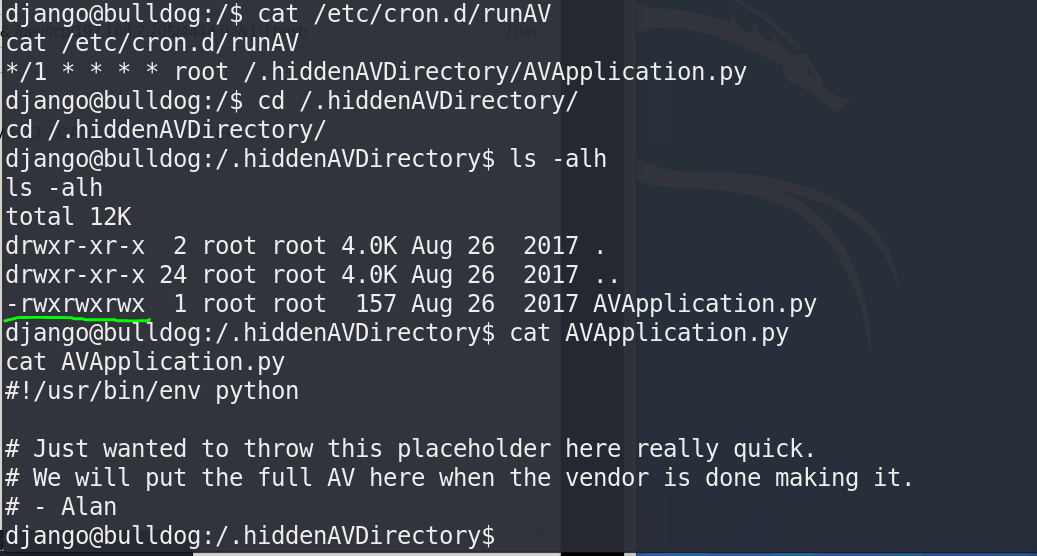 /.hiddenAVDirectory/AVApplication.py,然而这个py文件是任何人都可以修改执行的: