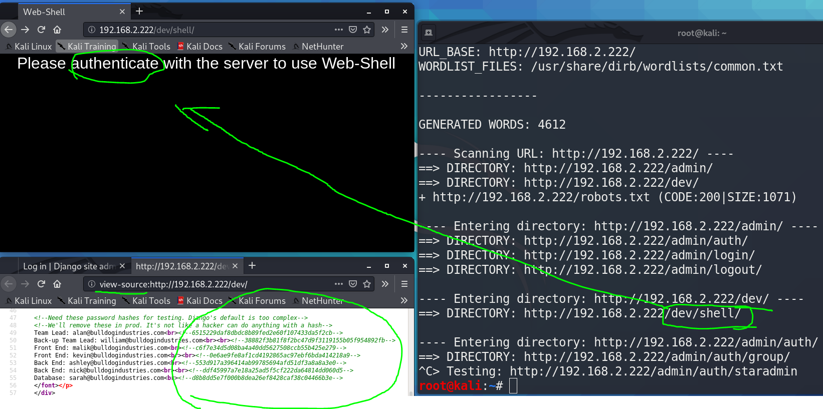 | nmap -sV 192.168.2.222 dirb http://192.168.2.222