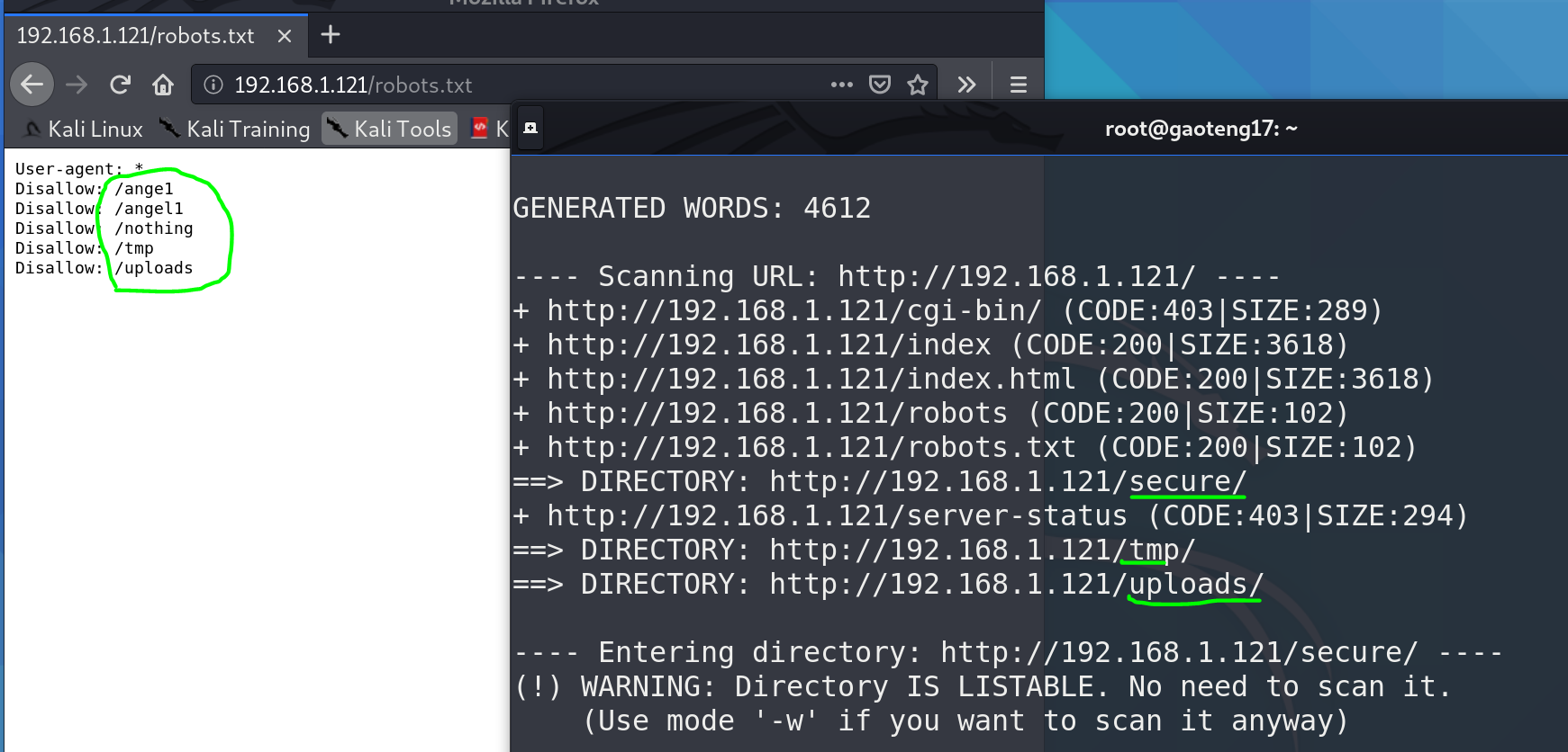 80口的web服务,dirb挖掘80端口web信息,找到robots.txt和几个敏感目录: