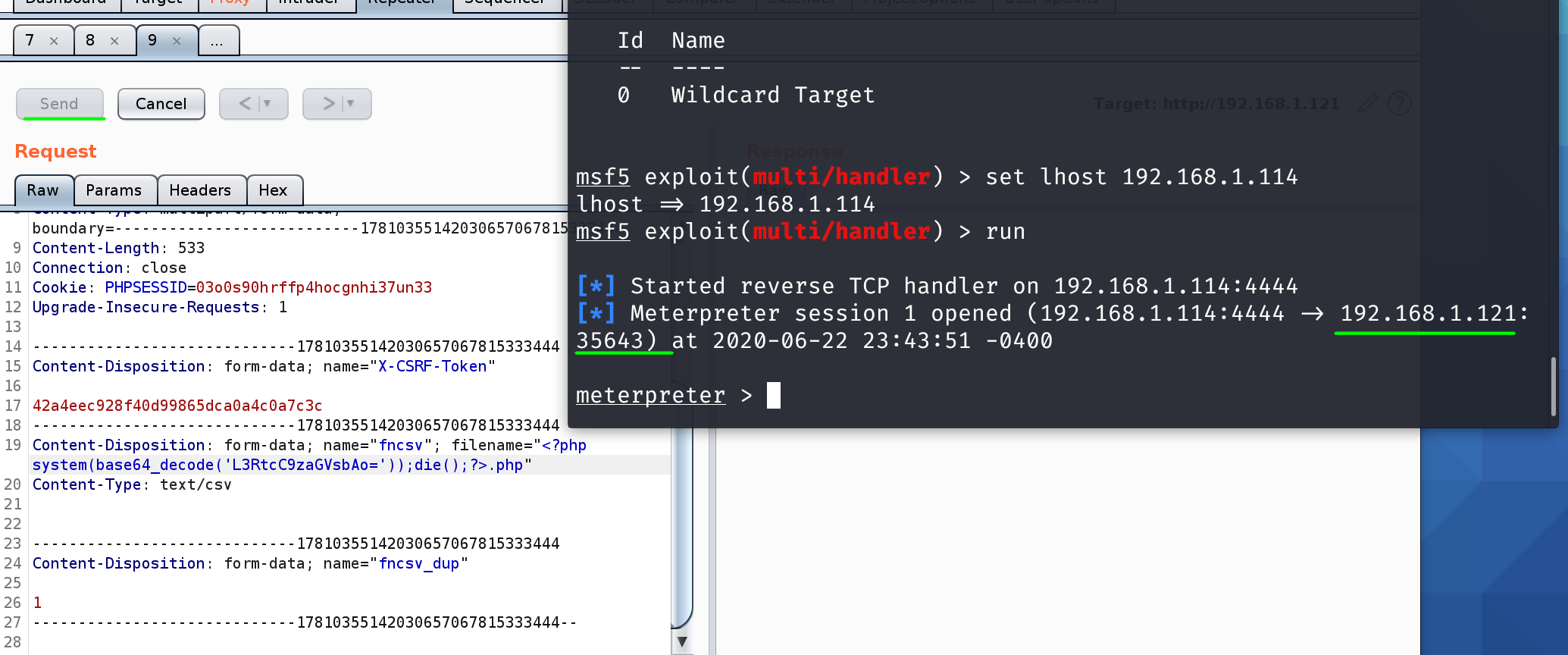 - metasploit开启监听,依次执行完三条命令,反弹得到