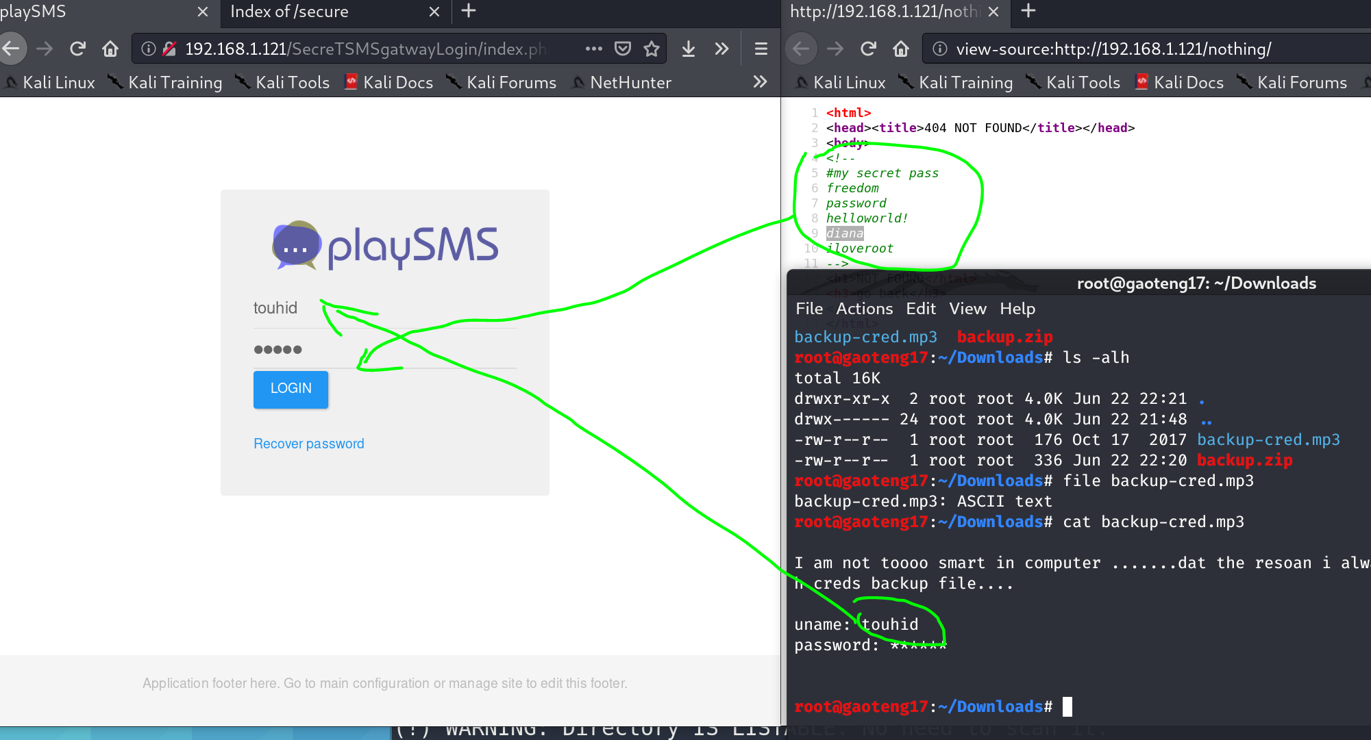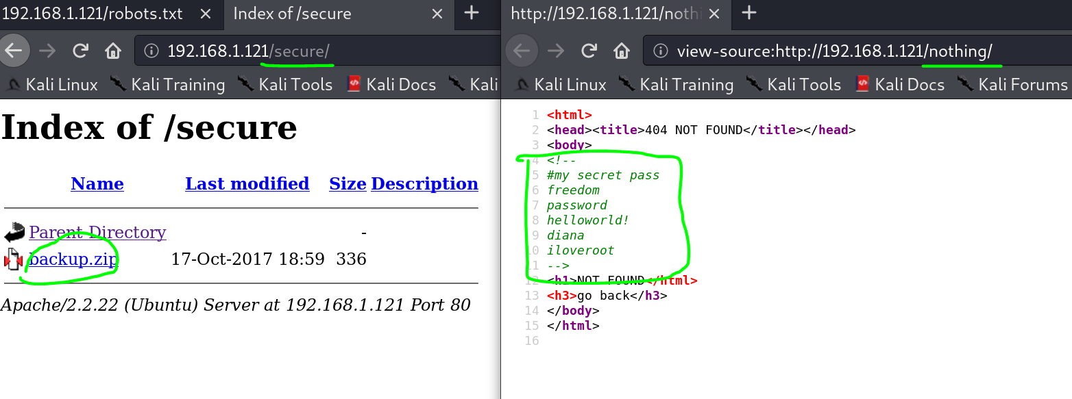 /secure/找到可疑的备份文件,/nothing/页面源码找到几个密码口令: