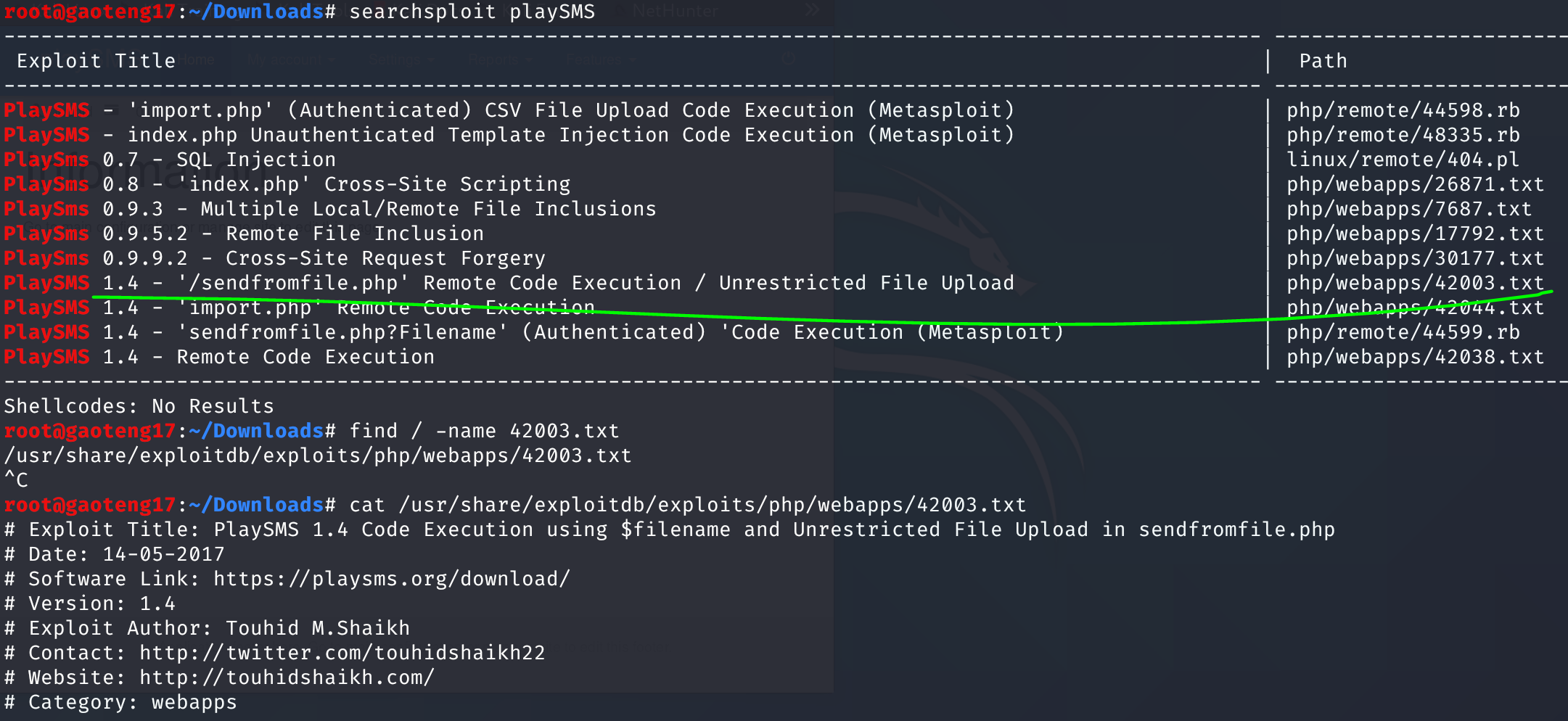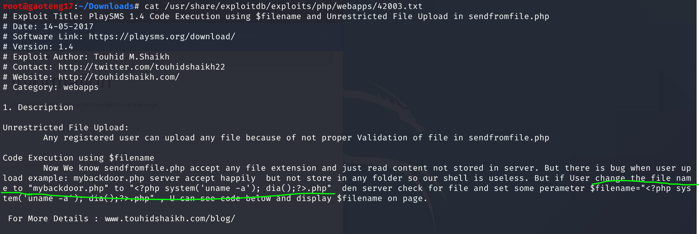 - 查找playSMS系统漏洞,找到一个修改文件名漏洞: