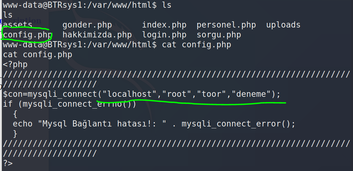 - 查看根目录下文件,找到一个配置文件,里面有mysql数据库用户与口令: