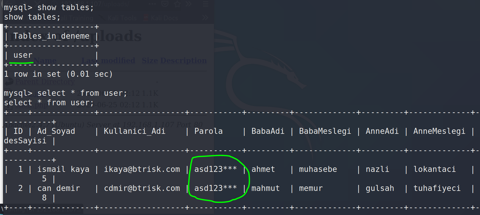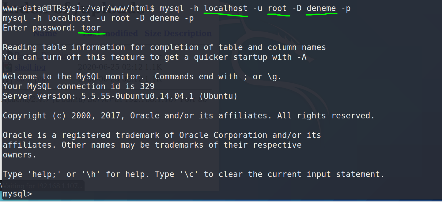 | mysql -h localhost -u root -D deneme -p Enter password: toor