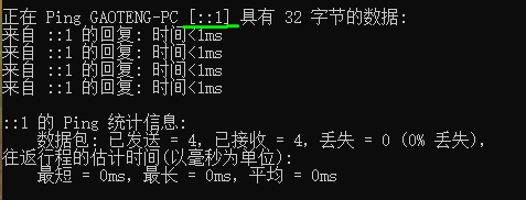 然后重启电脑,再ping localhost就解析到ipv4了: