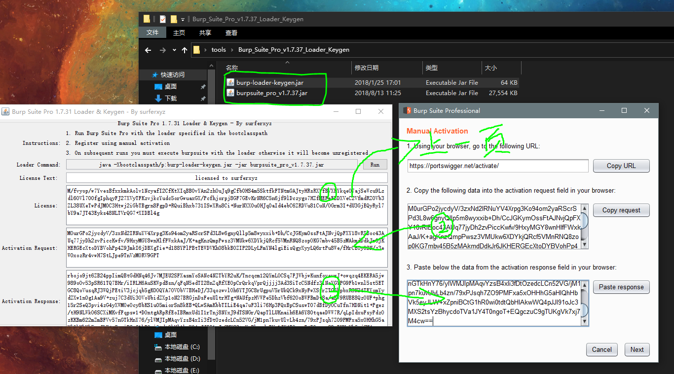 安装好jdk后,解压得到两个文件,一个注册机一个本体。运行注册机,按顺序复制粘贴license即可: