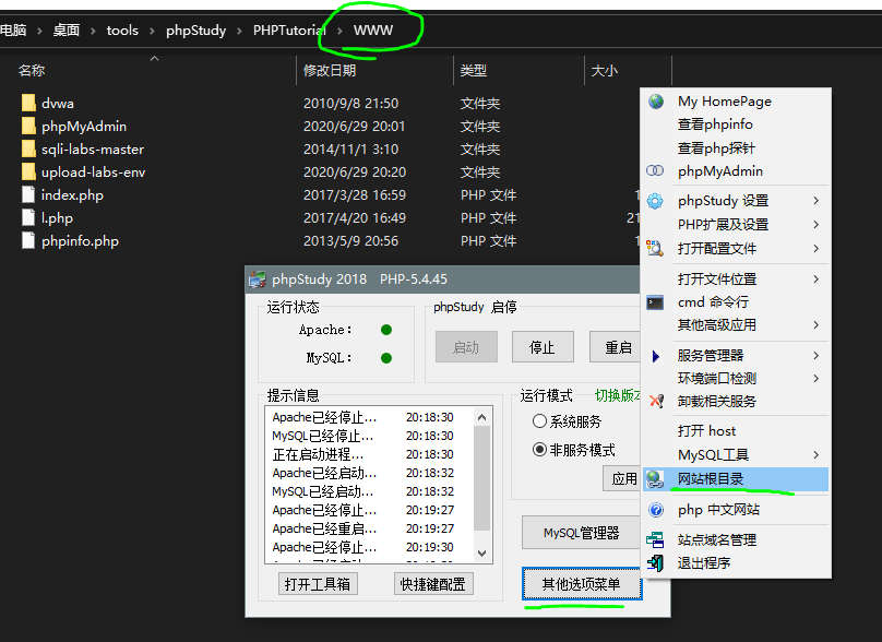 安装完查看网站根目录,这个\WWW目录下放练习靶机网站文件就可以本地访问了: