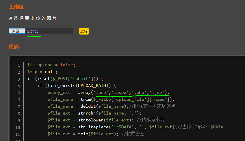 查看源码过滤了多种php格式,除了php3、phtml,修改文件后缀即可: