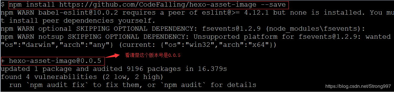 注意:不要使用npm install hexo-asset-image –save这个命令安装,版本号不对