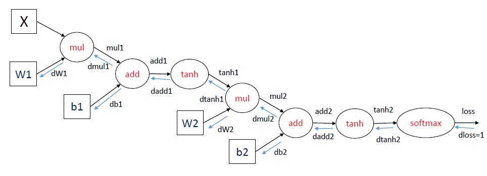 而理解BP算法原理最直接与清晰的就是根据computation graph了,话不多说,直接上图。